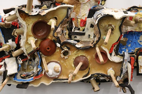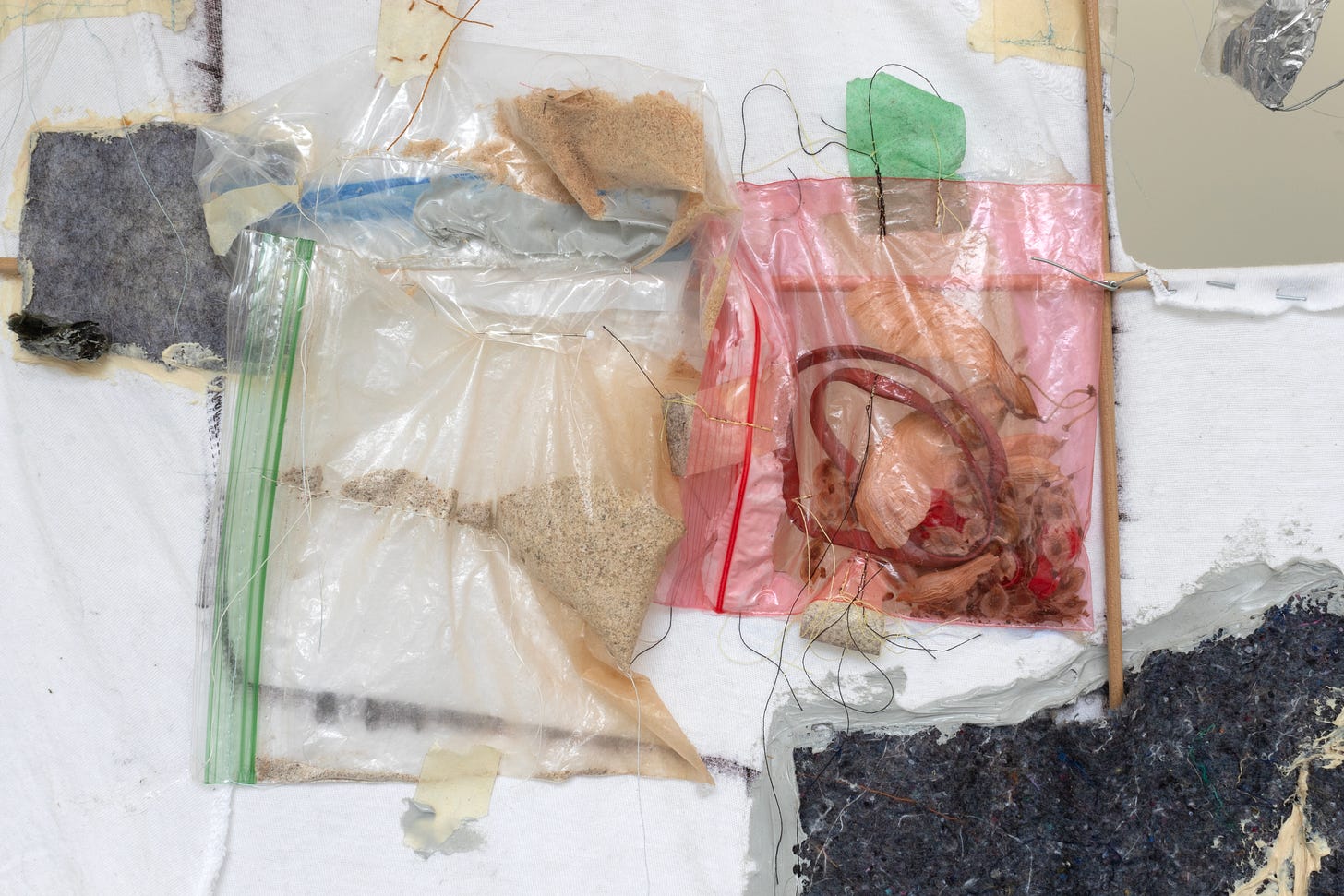 By the end of the summer, I’d cut up the pants into piles of fragments. Then I went home and had a flare-up. And then COVID came. I started writing weird poems about not making sculptures. In a studio visit with a successful, resourced filmmaker, I got lambasted, “why are you making work about not making work?!” ahaha (Anne Boyer’s What is “Not Writing”? was a big influence & surely informed Pharmacy Receipts’ declaration that “the context is the stuff”). By the next summer of my MFA, fully remote, I’d completely dematerialized my practice. I made a video. And then I started to medically transition, and this, to me, became my sculpture practice for a while. It’s been, if nothing else, filled with intense experiences that I can only understand as inherently formal and material. Same goes for being sick, always. By the time I got to Chicago last summer and got a studio, it had been basically 5 years since I had a studio practice. I knew I needed to return to something tactile, to process in registers that video and writing can’t.